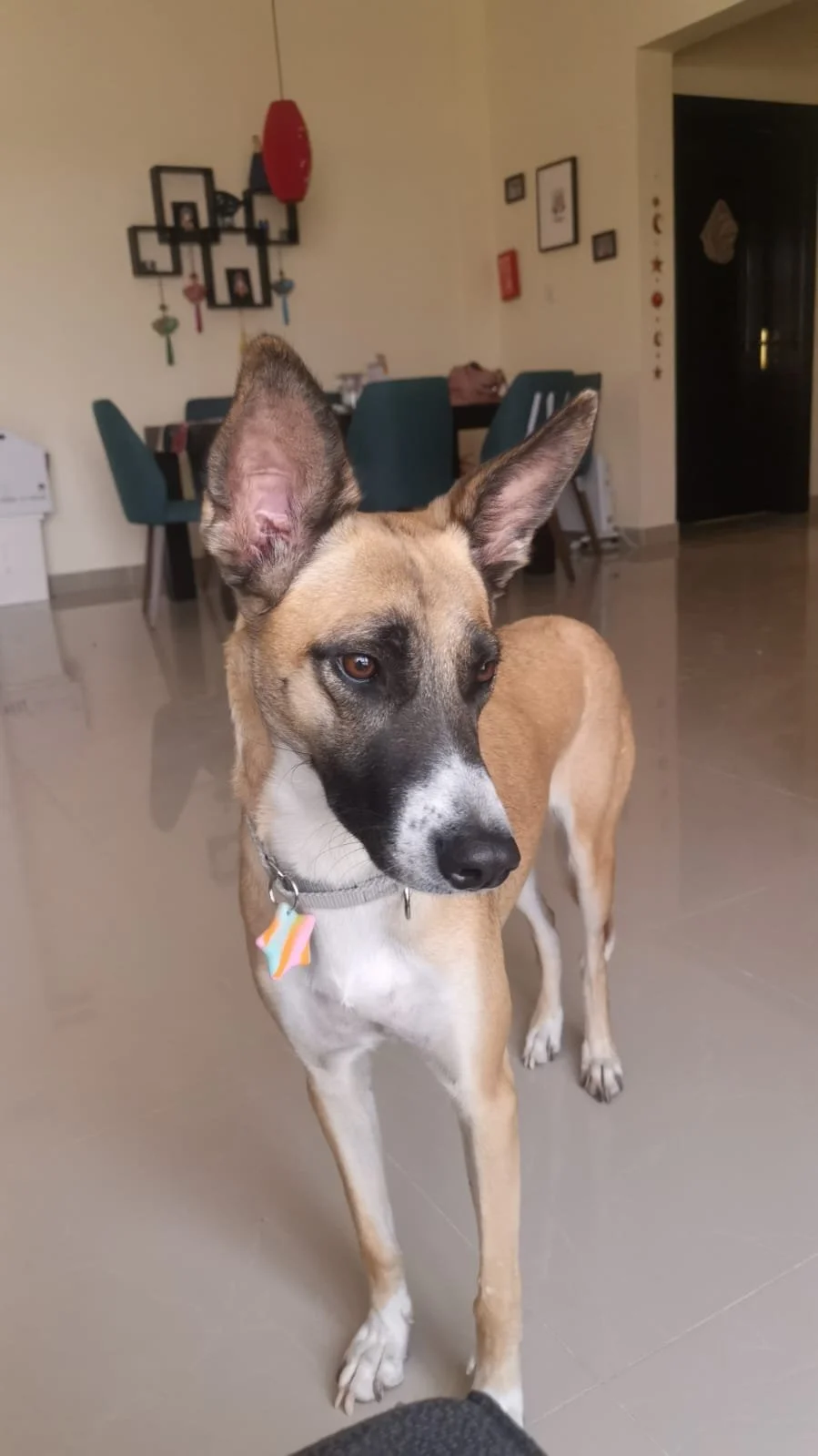 She has been crate trained. If you have friends over she would prefer to be in her bed or crate and, on her own time, come over to say hello and sniff at her pace.