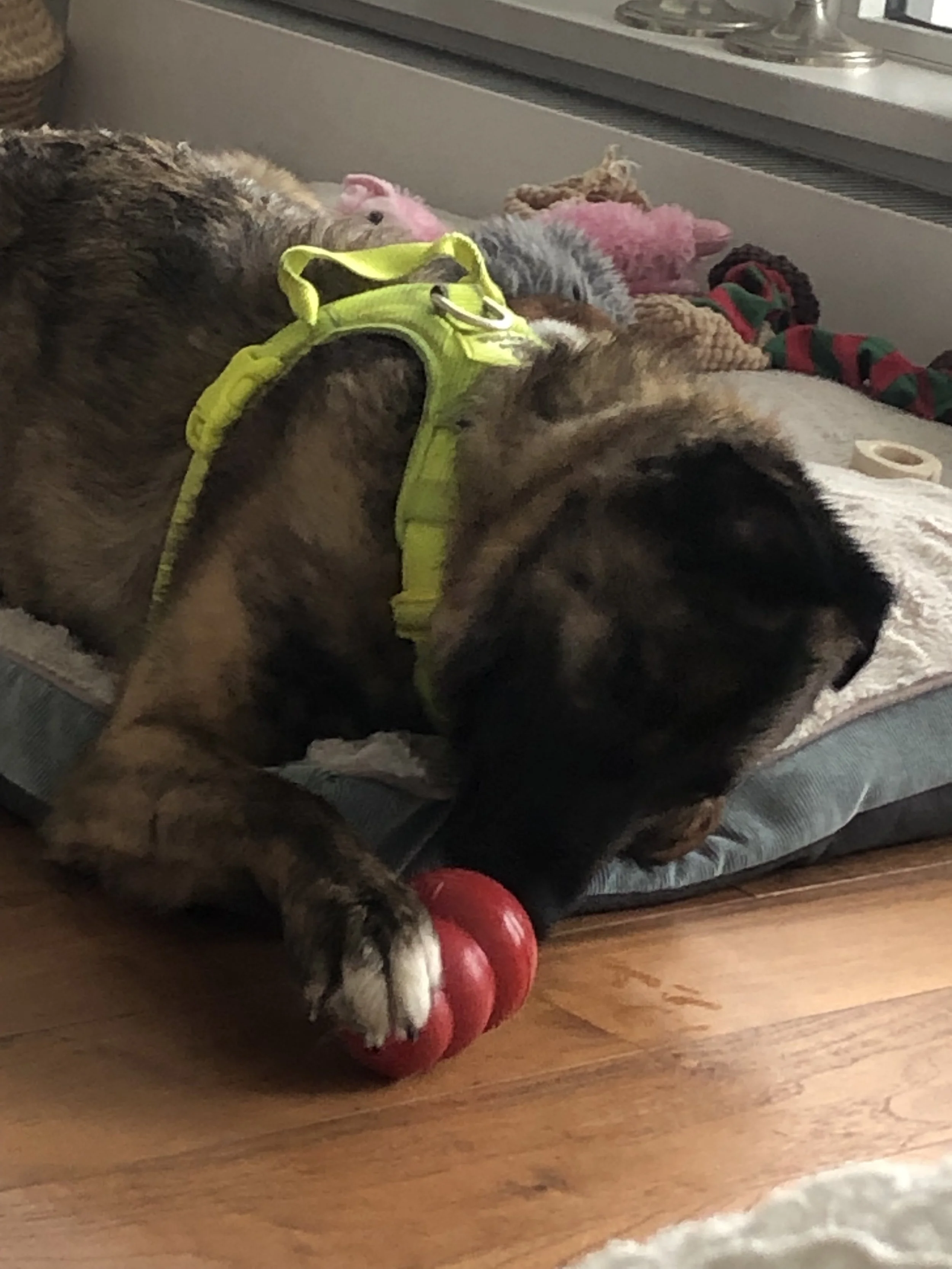 Samson is looking for a dog experienced quiet home, where he can spend a lot of time with his people. The perfect fit for Samson would be someone with dog experience, reactive dog experience and lot’s of time to commit to force and fear free training. Samson would do very well with one or two other medium or larger sized, confident and stable dogs. We are looking at a child free and cat free home.
